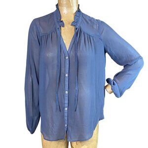 Hollister Sheer Long Sleeve Button-Down Tie Neck Blouse S Blue #310L