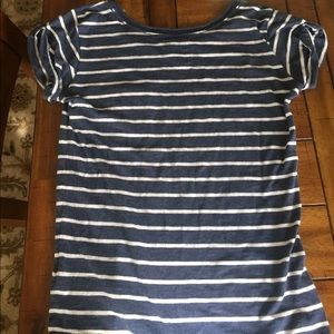 This is a cotton shirt, that is navy with white stripes. It's very soft and rarely worn