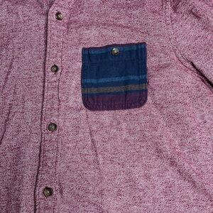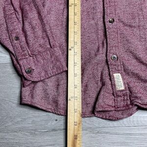 This product is a men's medium red flannel button-up shirt by Hollister. The shirt features a solid pattern, long sleeves, a collared neckline, and a regular fit. Made of cotton flannel, it is machine washable and suitable for casual occasions. With a preppy theme, this shirt is perfect for the winter, fall, and spring seasons.