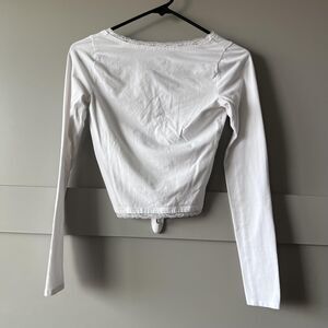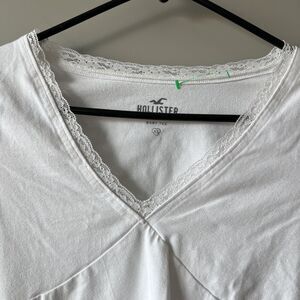 Hollister Shirt Women XS White Lace Trim V Neck Long Sleeve Baby Tee Cropped Y2K