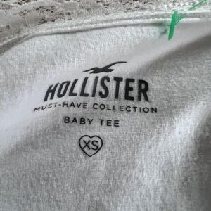 Visible branding: HOLLISTER logo print at inner neck; "Must-Have Collection" and "Baby Tee" markings.