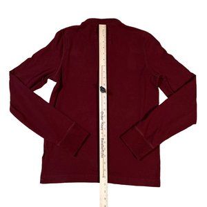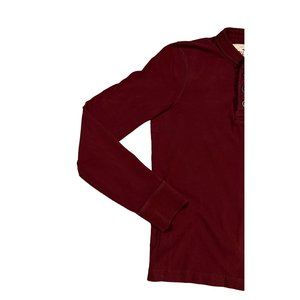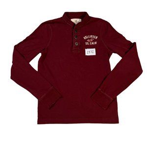 Hollister's women's long sleeve pullover in medium size has a quarter button up feature and elegant embroidery. The solid red color complements the cotton material.
