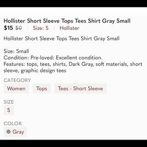 1) Hollister Short Sleeve Tops Tees Shirt Gray Small
