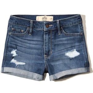 Hollister Short-Short Distressed High Rise Medium Wash Faded Shorts size 5