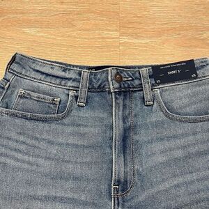 Hollister, Modern, Straight, Denim, Cotton Blend, Ultra, Outdoor, High Rise, 5-Pockets, Fall, Summer, Spring, Hollister Shorts Women's 3/2 Medium Wash Denim Ultra High Rise Zip Fly Outdoor.