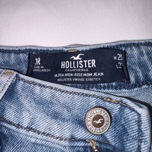 Hollister light wash distressed ultra hi rise straight leg mom jeans!