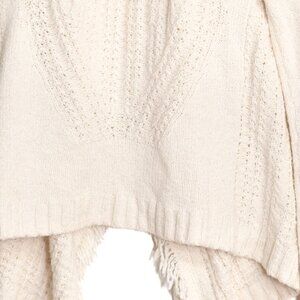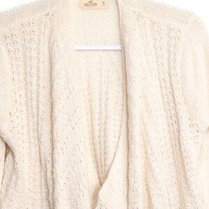 Hollister Size M Fringe Trim Open Draped Knit Cardigan Sweater Soft Cream Textur