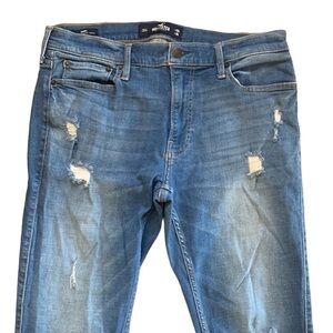 Hollister Skinny Advanced Stretch Blue Jeans Size 34 x 34. Destroyed skinny jeans - condition shown.