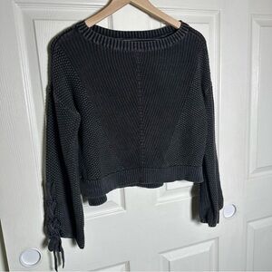 Hollister Small Charcoal Textured Knit Cotton Sweater Chic Dark Preppy Goth y2k