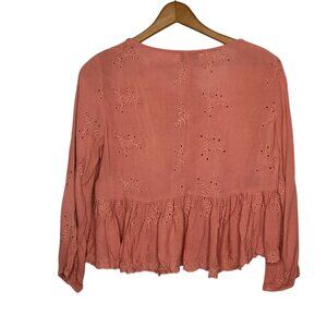 Hollister Small S Orange Eyelet Lace Embroidered Ruffle Peplum Babydoll Crop Top