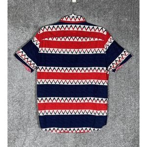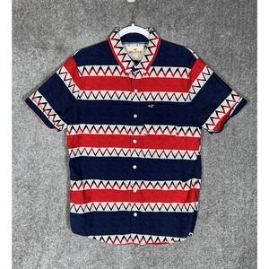 Hollister Southwestern Striped Button Down Shirt Mens Size Large Red Blue White Chest Pocket Short Sleeve