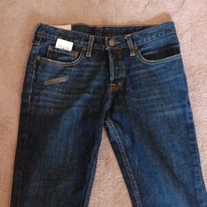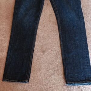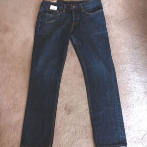 Like NEW. Dark wash straight leg jeans. W31 x L30 measures 32 at waist, 10 inch rise, button fly. 30 inch inseam. Slightly distressed at cuff back. I still have the gift receipt. Freshly laundered.