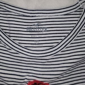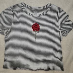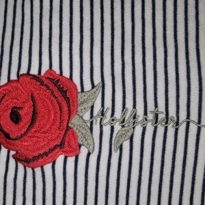 Hollister Striped Black and White Top with Red Rose Embroidery