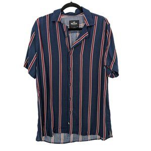 Hollister Striped Button Up Shirt Men Size L Casual Woven Retro Preppy Festival