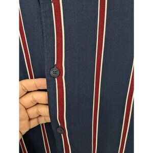 Flaws: Has a minor snag and dye imperfection (shown in the photos). Material: Viscose Features: • non stretch material • short sleeve • collared • logo • hipster, normcore, vacation, resortwear, going out, party, y2k, 70s, capsule, coastal, rave, versatile • winter, fall, spring, summer • striped • Imported Size: Mens L Measurements taken flat: Length 31.5 in Pit-to-Pit 22.5 in Condition: New With Defects Please Note: The fit of each item may vary slightly due to style, materials, stiffness, etc. A best practice is to use measurements and compare them with an owned item. Measurements were taken on a flat surface. Any additional questions, please feel free to send a message.