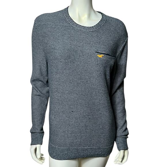 Hollister Striped Crew Neck Sweater Navy White Chest Pocket Medium Men's Casual