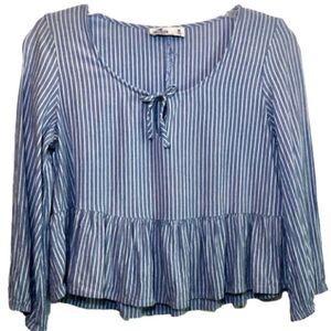 Hollister Striped Cropped Peplum Top in Blue/White Women’s Medium