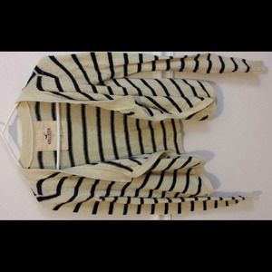 Hollister navy and cream striped stretchy knit cardigan with an open front.