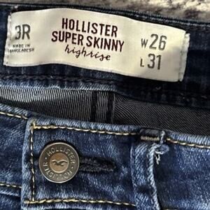 Hollister super skinny jeans, women’s dark wash jeans, high rise jeans, Hollister denim, size 3R jeans, stretch skinny jeans, W26 L31, junior jeans, Hollister California, authentic denim