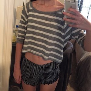 Grey and white striped crop top sweater. Never worn. No trades. Price is negotiable