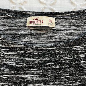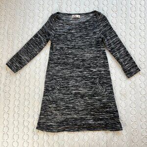 Cozy and cute Hollister heather knit sweater dresses in burgundy and black/grey. Dresses feature 3/4 length sleeves and front pockets. Very good used condition; no holes or stains, minor wash wear.