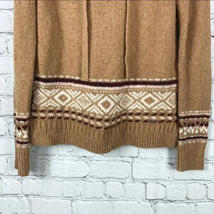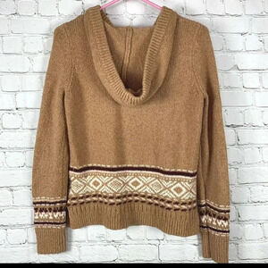 Hollister Sweater Hoodie Lace Up size XS Pullover Nordic Fair Isle Tan Boxy