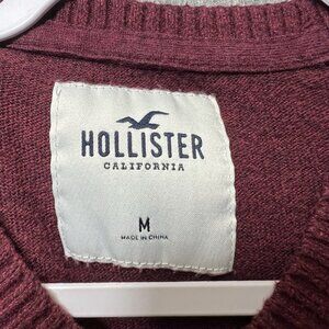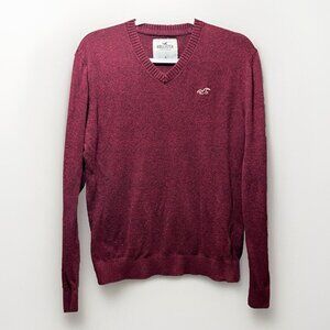 Hollister Sweater Men Medium V Neck Pullover Red‎ Ribbed Cuff