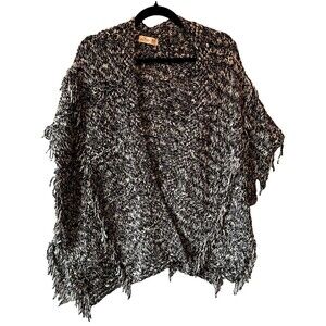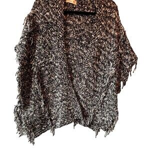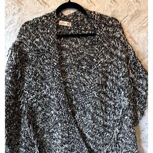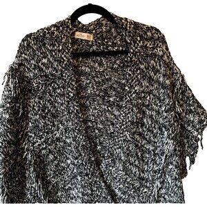 Hollister Sweater Vest Women M L Black White Open Front Draped Fringe Oversized