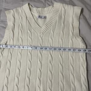 Hollister Sweater Vest Women Small Ivory V-Neck Sleeveless Knit Layering Ivy