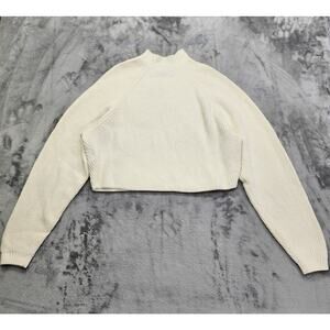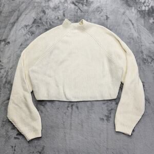 Hollister Sweater Womens XL Cream Mock Neck Crop Pullover Stretch Cotton Blend