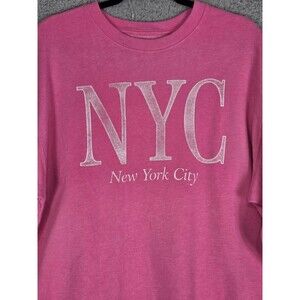 Hollister Sweatshirt Womens S Pink NYC Graphic Crewneck Logo Grunge City Girl