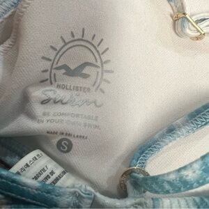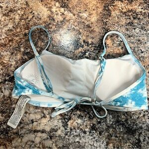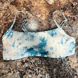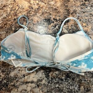 Stylish blue and white tie-dye swim top. Features adjustable straps.