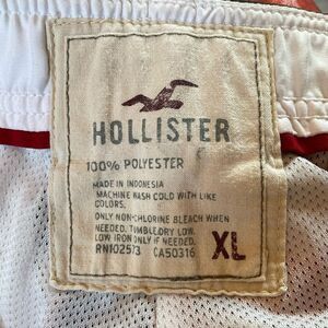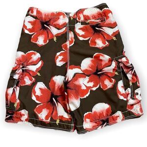 Hollister Swim Trunks size XL in EUC. Brown with a red and white floral design. Mesh inside lining. 2 pockets. Comes from a smoke free dog home. BIN 19