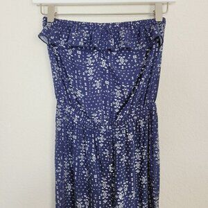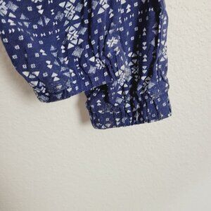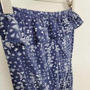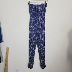Hollister Sz X Small Bandeau Jumpsuit Tribal Aztec Print Navy Blue Strapless VGCruffle at the bodice