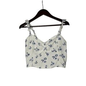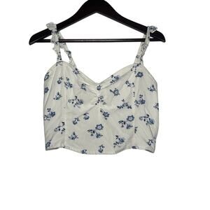 Hollister Tank Top Women's Blue/White Small Floral Cropped Sweetheart Neckline
