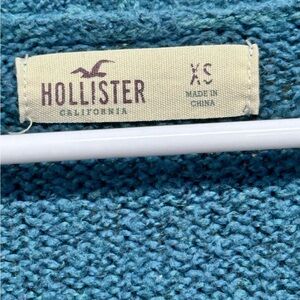 Hollister Teal Blue Cardigan Sweater with Textured Knit and V-Neck Design