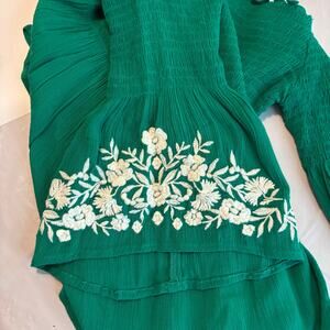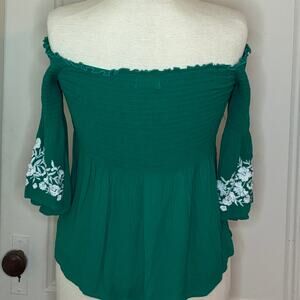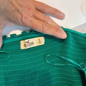 Hollister Top S Green Peasant Softgirl Y2K Smocked Stretchy Boho Gypsy Fairycore