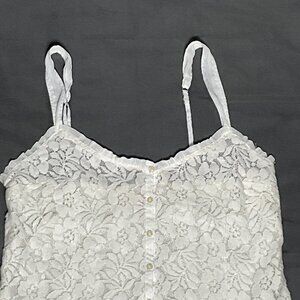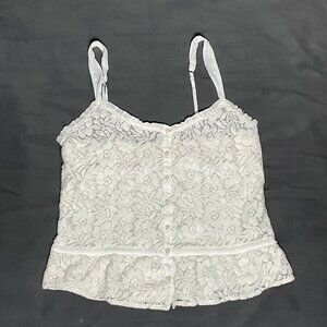 Hollister Top Women M Ivory Sleeveless Button Up Lined Tank Boho Beach Summer