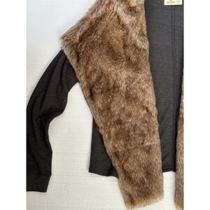 Hollister Top Women M/L Faux Fur Lined Long Sleeve Open Front Sweater Gray