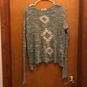 Hollister tribal knit grey sweater. Thin material. Size medium/large. Cotton, acrylic, and polyester.