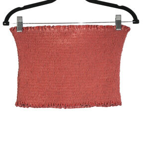 Hollister Tube Top Womens Large Pink Stretch Velvet Smocked Crop Boho Top