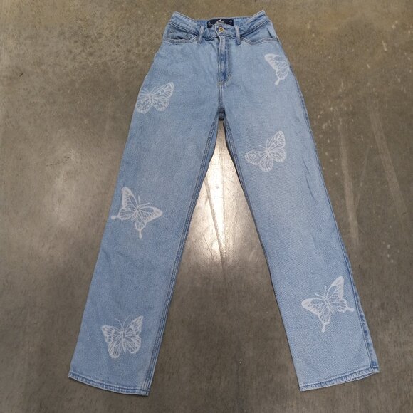 Hollister Ultra High Rise Dad Jeans Womens 24 x 31 Light Wash Butterflies