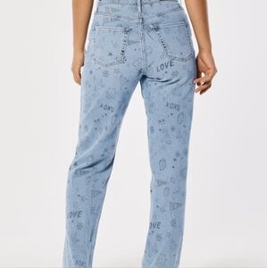Hollister Ultra High Rise Love Message Dad Jeans 26W Graphic skull, birds, cats