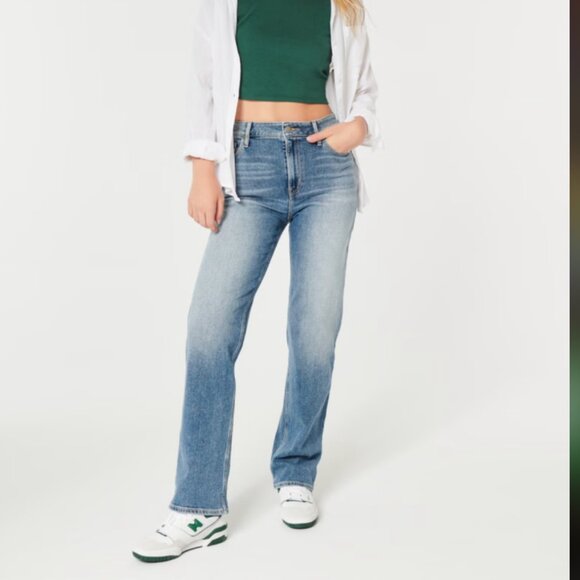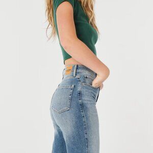 Hollister Ultra High Rise Medium Wash Stretch Straight Leg Dad Jeans Size 3R