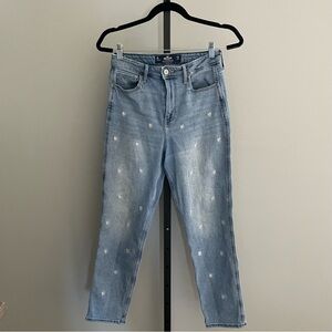 Hollister Ultra High Rise Mom Jean Blue Tapered Flower Embroidered Size 26