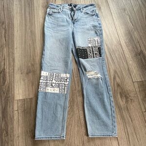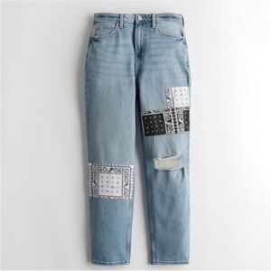 Hollister Ultra High Rise Mom Jeans Patchwork Bandana