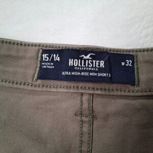 Pre-owned good condition w/ minor flaw. No other visible flaws. Normal signs of wear. Hollister Ultra High Rise Mom Shorts 3. Neutral muted olive green cotton fabric. Cargo style. High Rise. 3 inch inseam. Zip fly. Belt loops. Waist pockets. Small side pockets with flaps. Back pockets. Stretchy. Size per tag: 15 / W 32. Fabric: 98% Cotton/ 2% Elastane. Made in Vietnam. Size per tag does not guarantee desired fit, please see pictures for measurements.