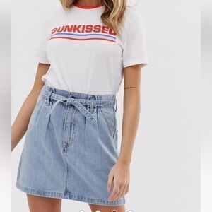 Hollister Ultra High Rise Paper Bag Waist Denim Mini Skirt