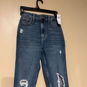 Hollister Ultra High Rise Stacked Vintage Straight Distressed Jeans Sz 00R
