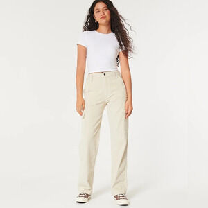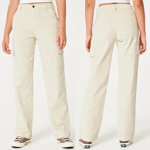 Hollister Ultra High-Rise Corduroy Baggy Cargo Pants Beige Off-White Cream